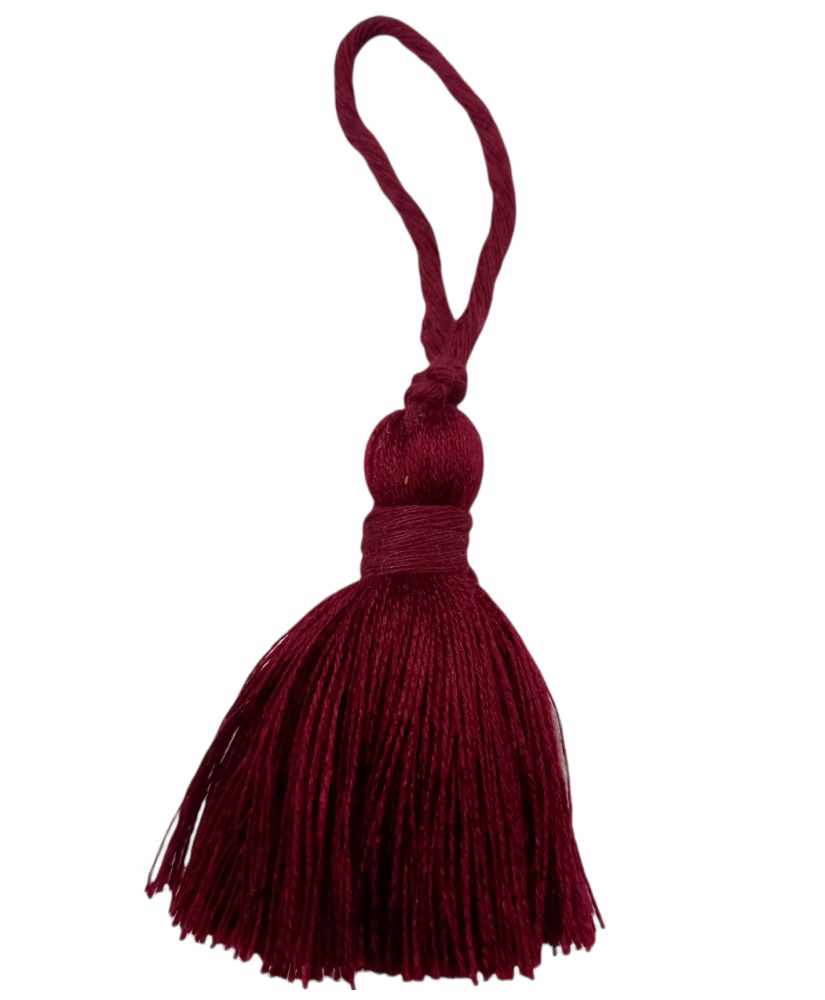 Κομψή φούντα κατασκευασμένη από ραιγιόν νήμα με μεταξένια υφή και ιδιαίτερο δέσιμο στο λαιμό. Διαθέτει θηλιά για εύκολη τοποθέτηση σε κλειδιά, τσάντες,κοσμήματα,έπιπλα, κουρτίνες ή άλλες διακοσμητικές και χειροποίητες δημιουργίες. Ύψος: 10 εκ.